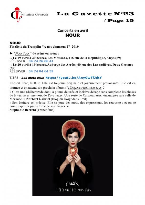 Le 16 octobre 2019, soirée Actu Chanson avec Nour